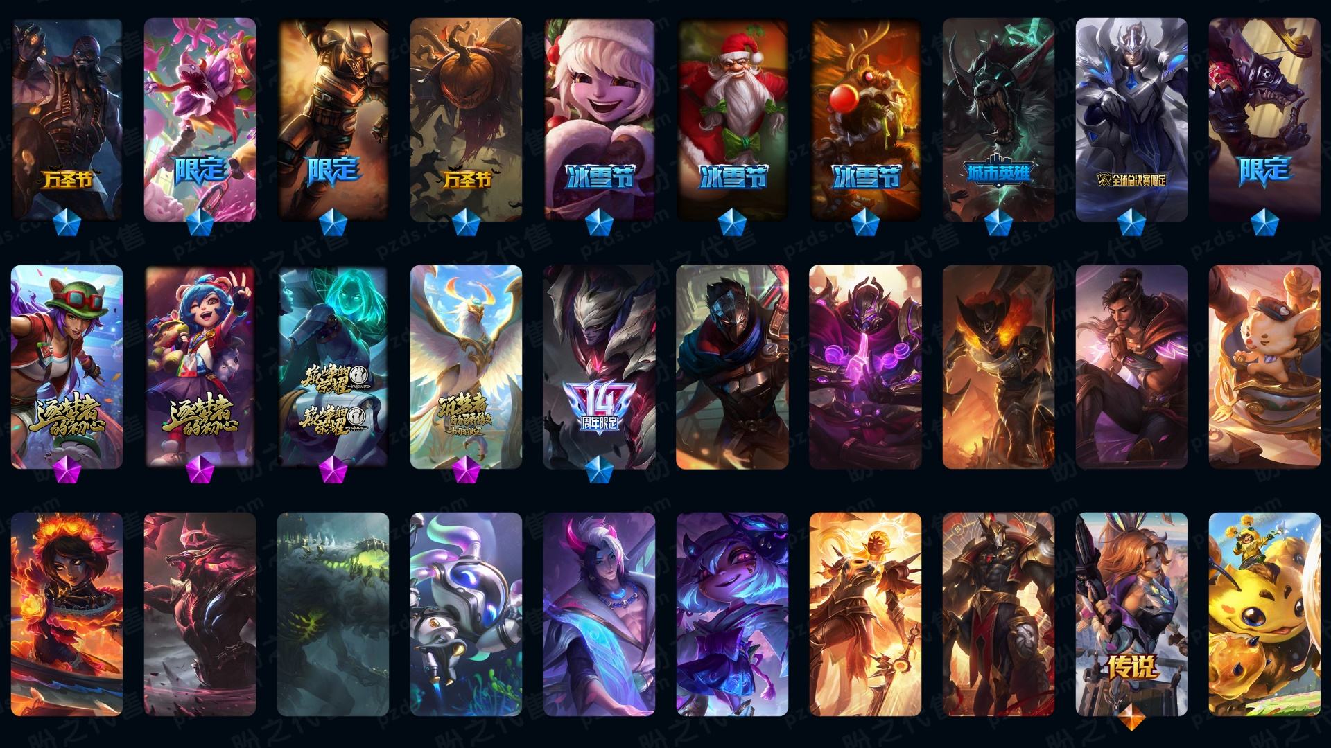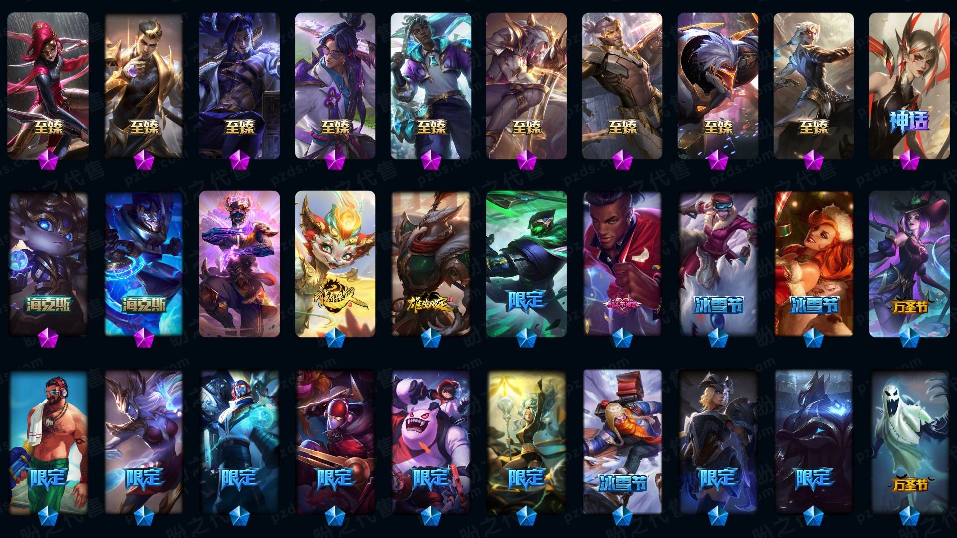 全英雄 皮肤更新至998 龙虾 摄魂vn 全新至臻 各种周年限定 花木兰 海神 各种皮肤等您来体验